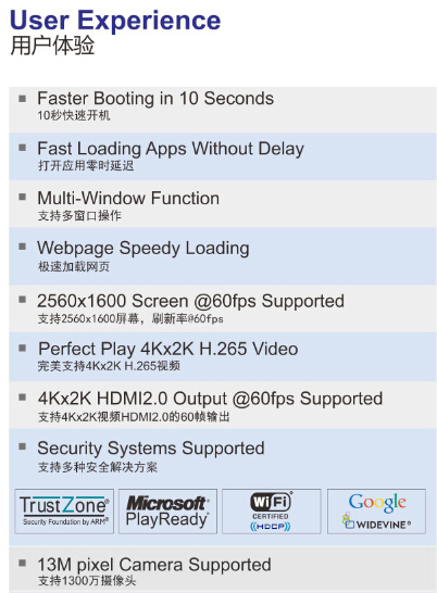 三大技術(shù)為瑞芯微獨(dú)家技術(shù)。這為采用RK3288處理器的OEM品牌廠商提供了更為強(qiáng)大的技術(shù)壁壘與核心競(jìng)爭(zhēng)力。