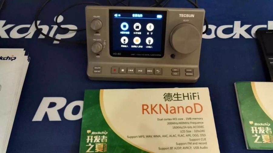 現(xiàn)場(chǎng)展示了多款搭載RKNanoD的音響設(shè)備,具備七大特點(diǎn):好聲音(>100dB SNR)、真HiFi(24bit 192Khz)、低功耗(8mA MP3播放)、高性能雙核M3、大容量1MB SRAM、無(wú)線連接、FreeRTOS。