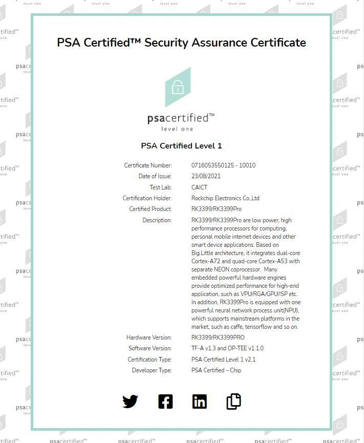 RK3399Pro及RK3399通過(guò)Arm平臺(tái)安全架構(gòu)PSA認(rèn)證