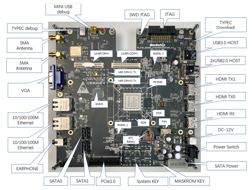 圖:RK3588 EVB 功能接口正面分布圖