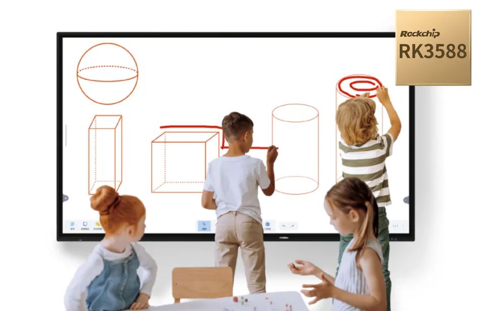 區(qū)別于傳統(tǒng)僅用于教學(xué)演示的大屏,搭載RK3588的RC系列集高清顯示、交互式電子白板、電腦、電視、音箱等多功能于一身,可實(shí)現(xiàn)內(nèi)容數(shù)字化和學(xué)情數(shù)據(jù)化,具備人機(jī)交互、智能識(shí)別、學(xué)習(xí)數(shù)據(jù)分析等功能。